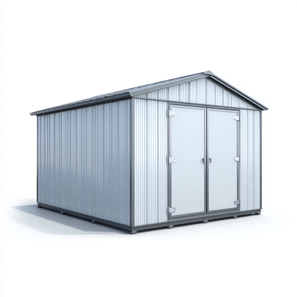 La struttura è realizzata in metallo con pannelli profilati, rifiniti in tonalità grigio chiaro. Il materiale è adatto all'uso esterno e offre una buona resistenza alle condizioni atmosferiche comuni.